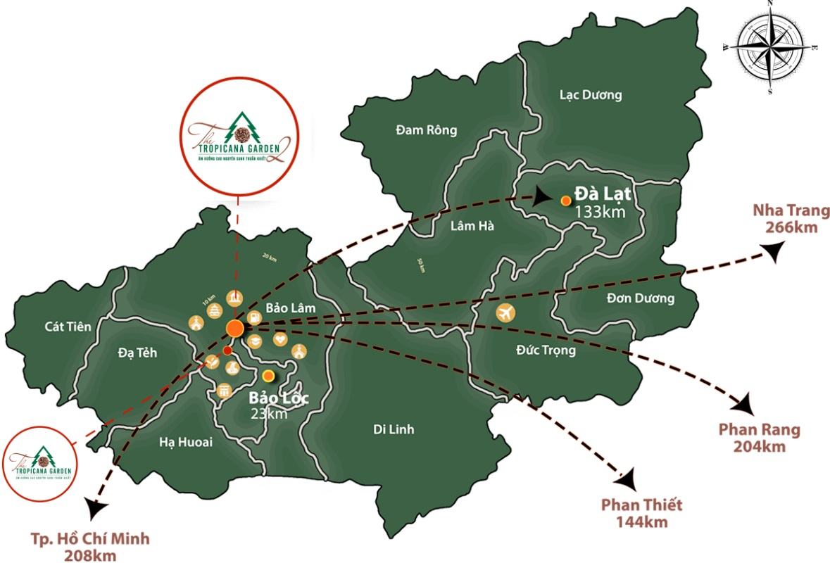 Nằm trên trục đường dẫn nối liên huyện Bảo Lâm và thành phố Bảo Lộc, nơi có tiềm năng lớn mạnh để phát triển các dòng bất động sản nghỉ dưỡng cao cấp; Làng sinh thái The Tropicana Garden là biểu tượng mới của Bảo Lâm và chính là cơ hội tích lũy tài sản gia tăng giá trị trong tương lai.