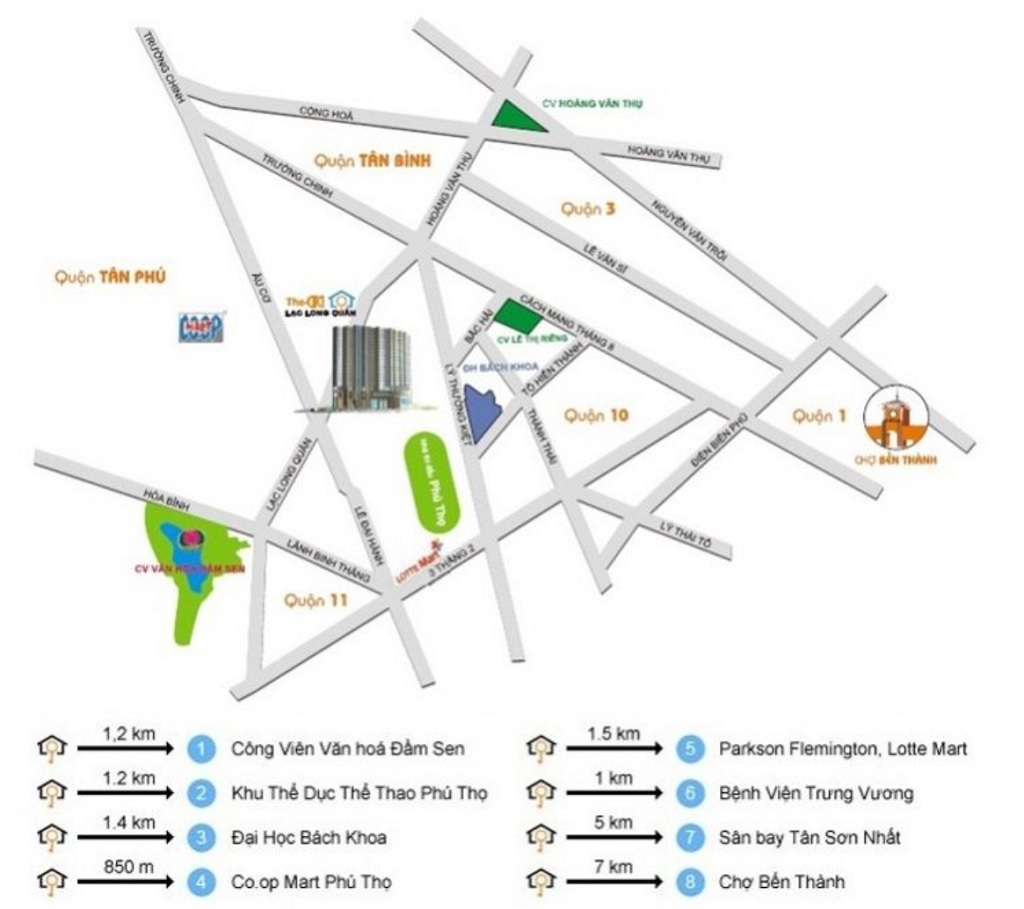 Dự án The Useful tọa lạc ngay ngã tư Lạc Long Quân – Âu Cơ, Quận Tân Bình, TP.Hồ Chí Minh, nằm ở phía Tây Nam thành phố. Từ đây bạn có thể di chuyển dễ dàng về các quận trung tâm thành phố như: Quận 1, Quận 3, Quận 5, Quận 10, Quận 11…