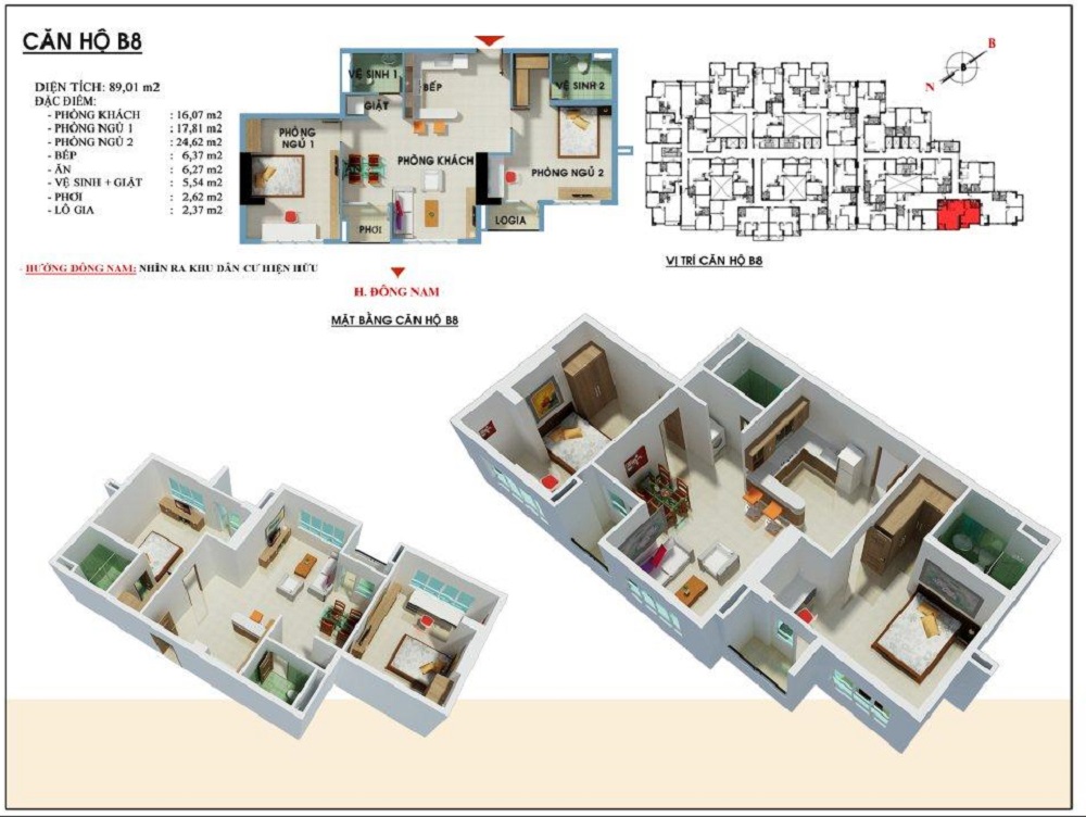 Block B: Gồm 10 kiểu thiết kế căn hộ