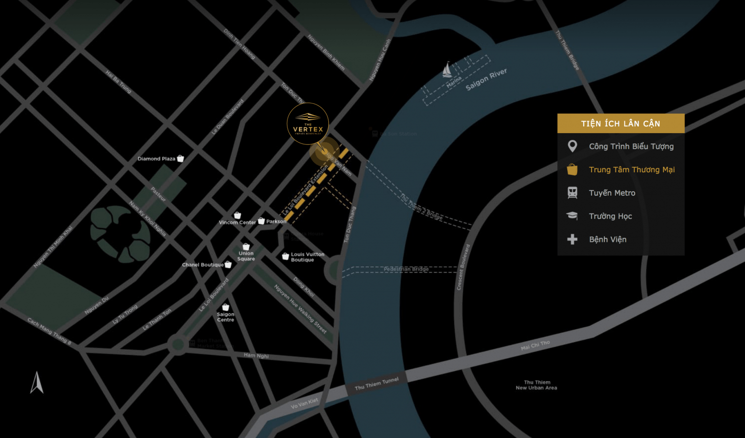 • Đặc biệt dự án The Vertex kết nối trực tiếp với cầu Thủ Thiêm 2 qua khu trung tâm kinh tế, tài chính mới – khu đô thị mới Thủ Thiêm.