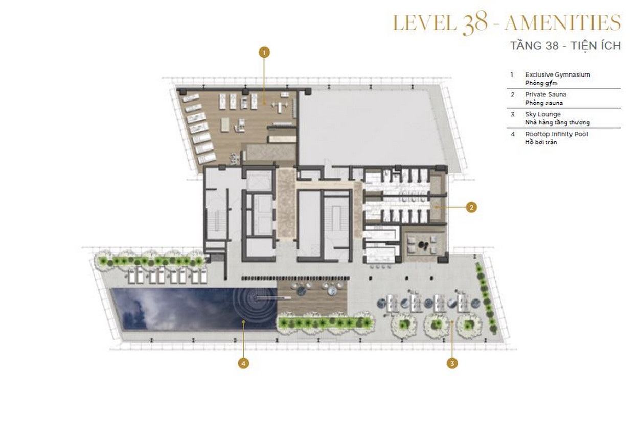 • Các tiện ích trên không đẳng cấp như: Hồ bơi vô cực dài 25 m cao nhất thành phố; Nhà hàng tầng thượng siêu sang; Vườn tầng thượng tự nhiên mang đến bầu không khí trong lành;