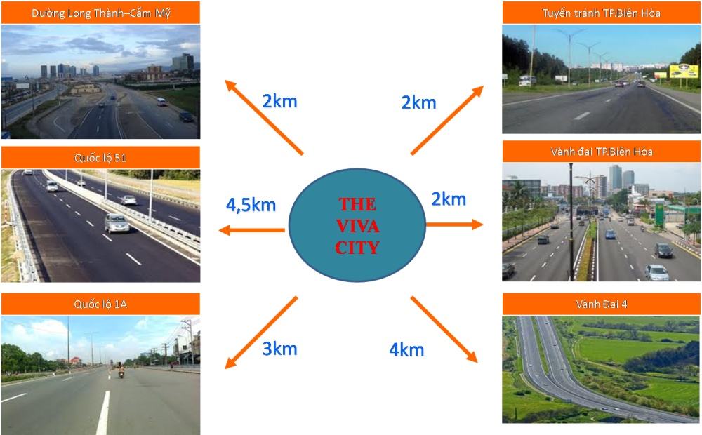 Nhờ sở hữu vị trí đặc biệt, khu đô thị Viva trở thành tâm điểm kết nối với các tiện ích cũng như các tuyến đường trọng điểm kết nối với nhiều trung tâm kinh tế ở tỉnh thành phía Nam. Có thể lấy một vài ví dụ như sau: