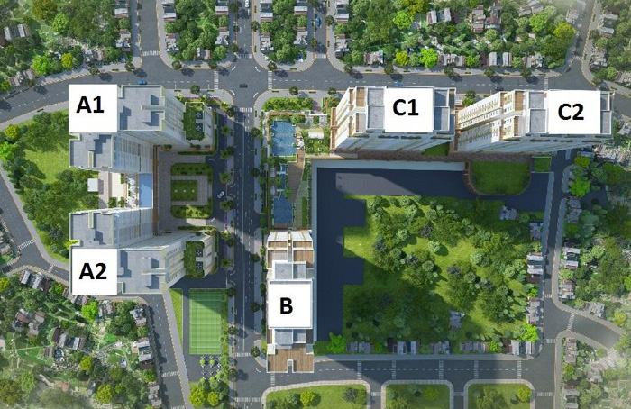 + Tháp C1+C2 sẽ có 2 tầng đậu xe, Tháp A1+A2 sẽ có 3 tầng.
