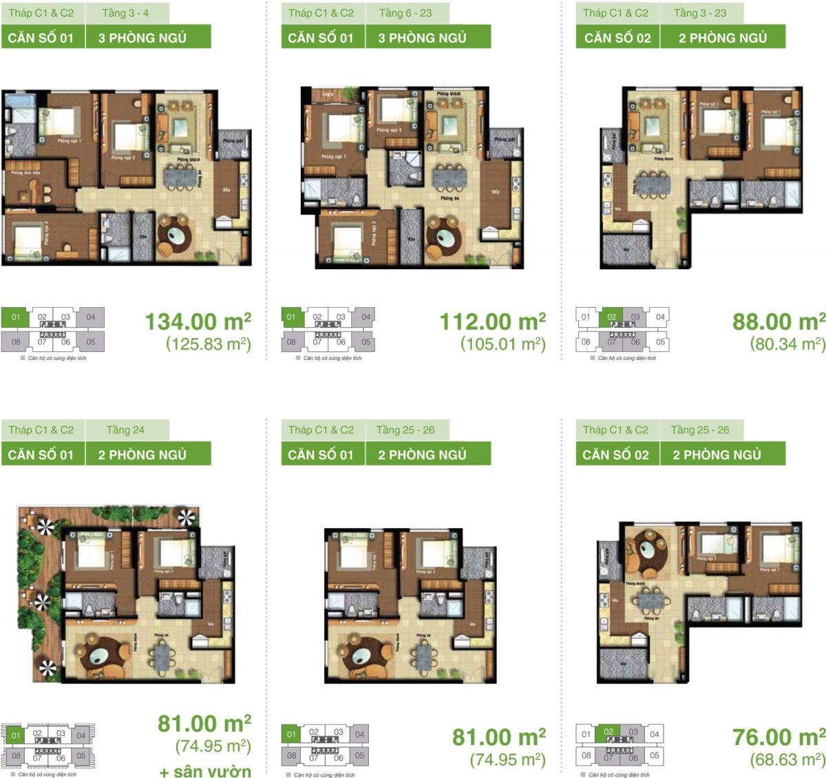 + Giai đoạn 1: 02 block C1, C2 cao 27 tầng với 388 căn hộ đã hoàn thiện và đi vào sử dụng từ tháng 04/2014