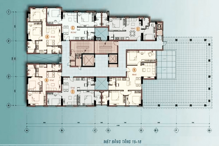 Trung Đông Plaza cho ra đời nhiều căn hộ với nhiều loại diện tích khác nhau phù hợp với nhiều đối tượng. Từ tầng 3 đến tầng 17, các căn hộ có diện tích từ 55 m2 – 96 m2, tầng 18 là căn hộ Loft có tổng diện tích từ 97.5 – 110.5m2, các căn hộ được thiết kế với ít nhất hai mặt nhận được ánh sáng tự nhiên, không khí thoáng mát.