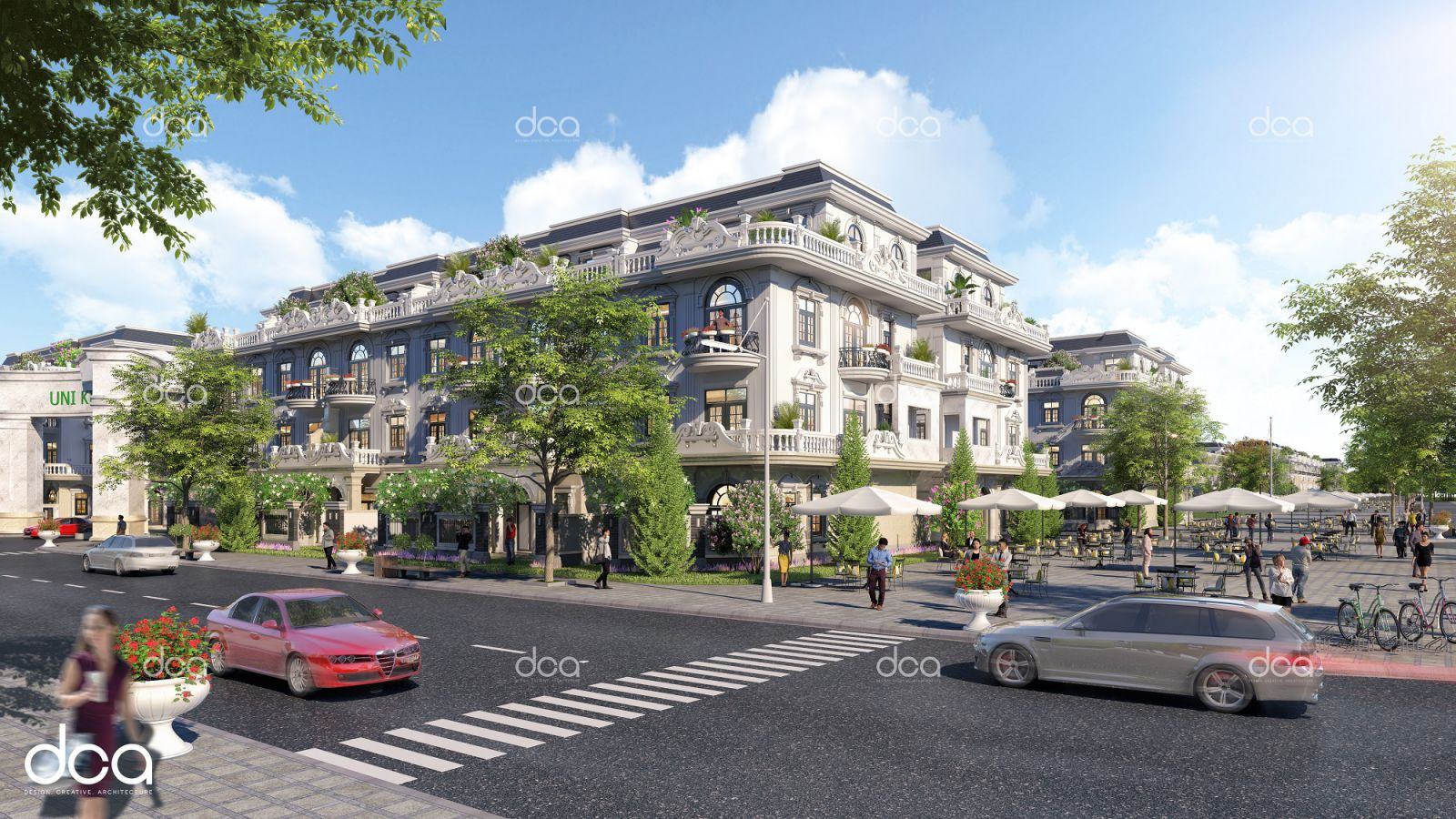 UNI KING BAY – VILLA tạo ra một quần thể kiến trúc độc đáo, trong đó điểm nhấn ấn tượng nhất trong dự án này là dãy shophouse sang trọng, phục vụ nhu cầu vui chơi giải trí của cư dân trong suốt kỳ nghỉ.