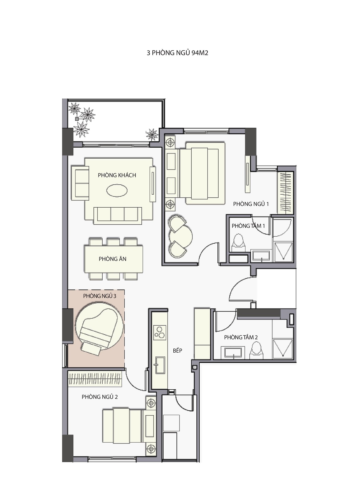 Căn hộ chung cư diện tích từ 77,42 – 105,36m2 |
