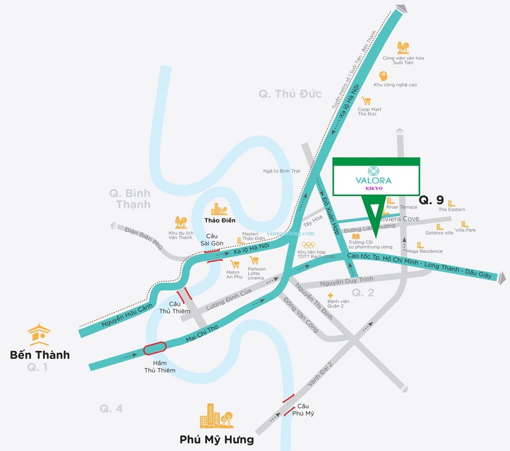 Khu biệt thự Valora Kykio nằm trong vùng quy hoạch khu đông thành phố với với hệ thống biệt thự và căn hộ cao cấp. Xung quanh dự án Valora Kykio có đầy đủ tiện ích hiện hữu như: Trường học, bệnh viện quốc tế, siêu thị, trung tâm thể thao, khu trung tâm hành chính, hệ thống siêu thị dày đặc cụ thể như sau: