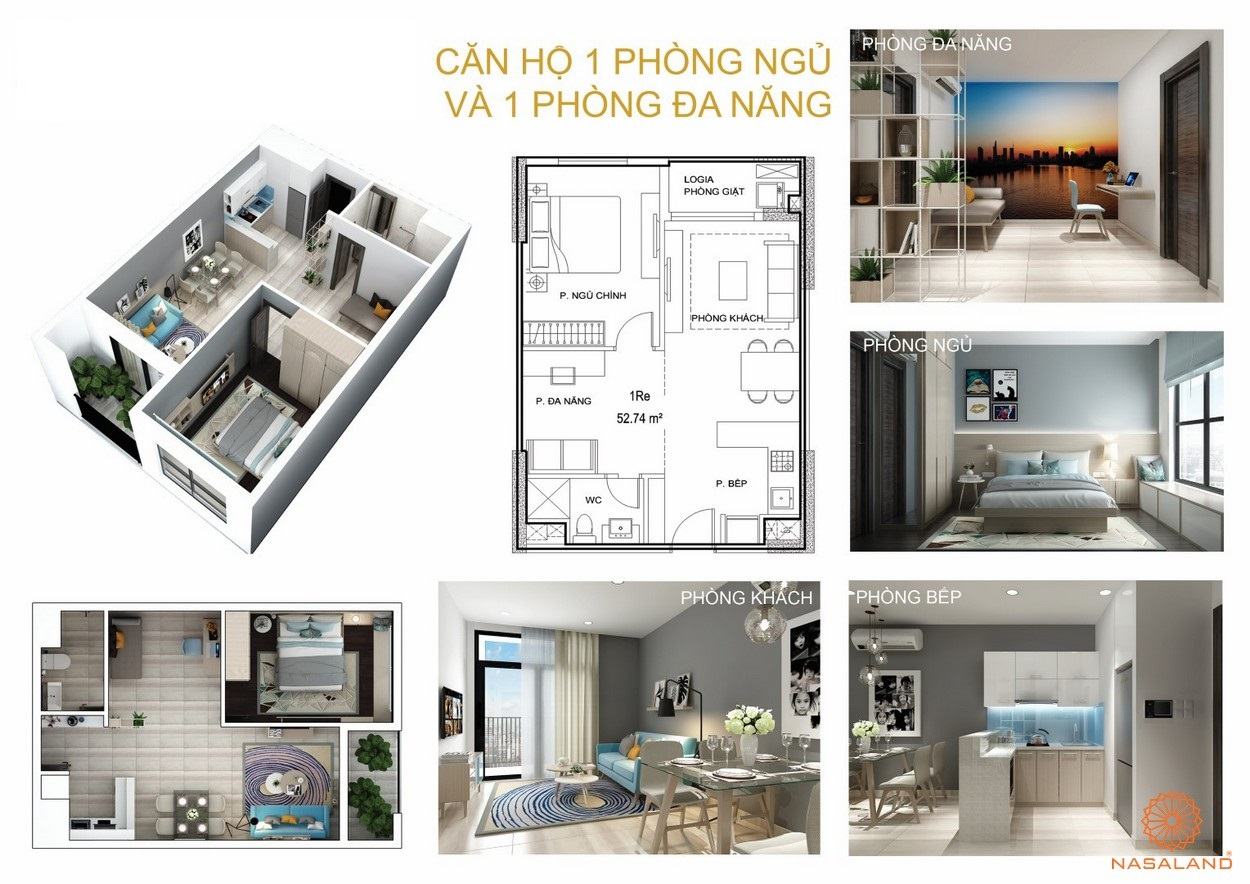 + Căn hộ 01PN: 52,74m2