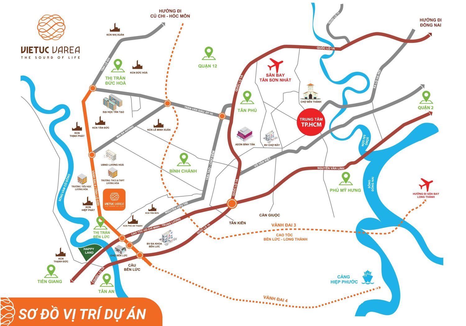 Các tuyến đường chính kết nối dự án VietUc Varea Long An như sau