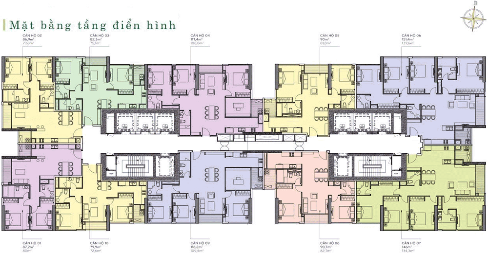 Số lượng sản phẩm của dự án có tổng cộng hơn 10.000 căn hộ thuộc phân khúc cao cấp cùng căn hộ Officetel đa dạng diện tích thiết kế từ 1 – 4 PN, có quy hoạch thiết kế từ 50 – 200m2