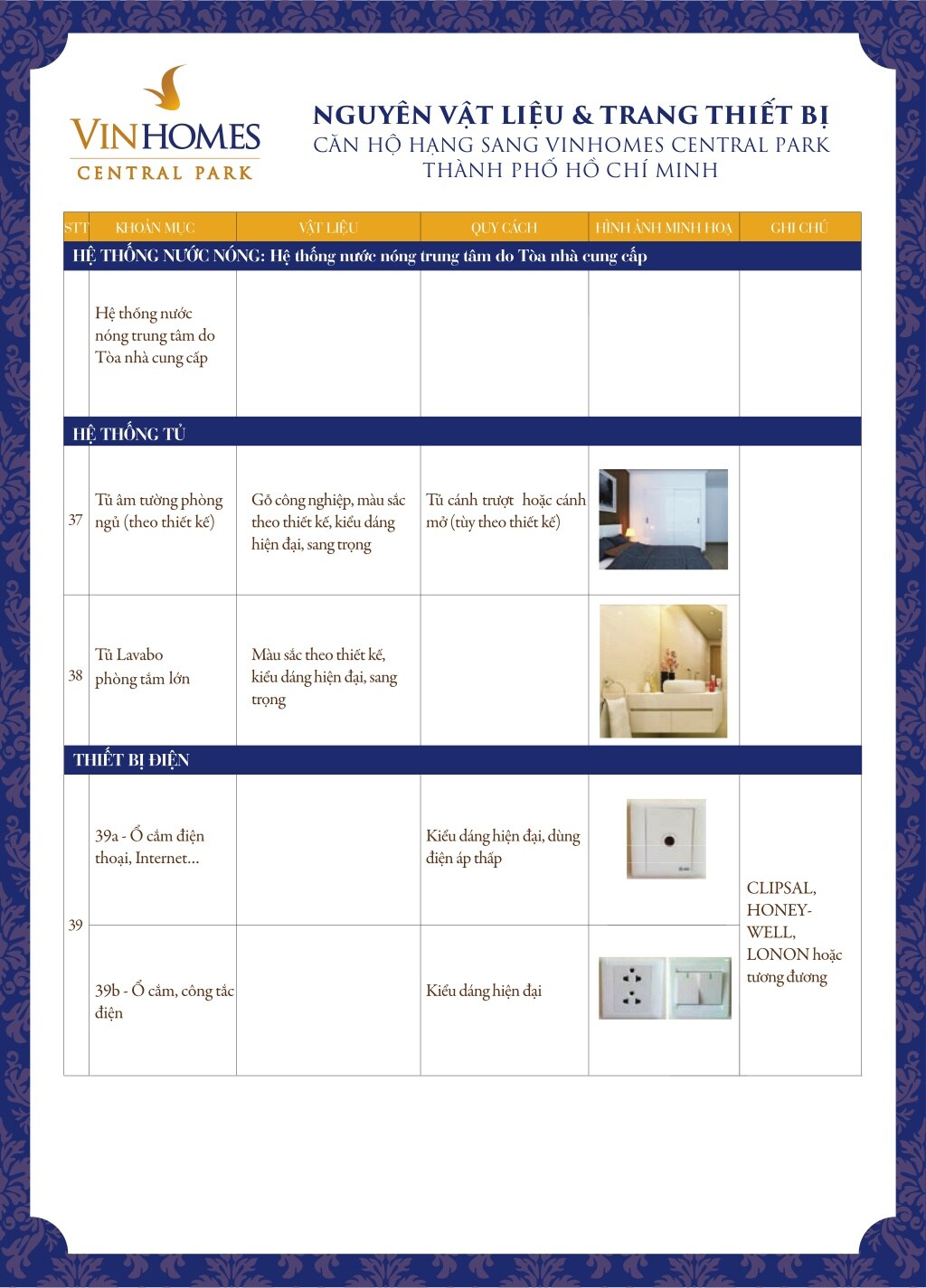 TIỆN ÍCH DỰ ÁN VINHOMES CENTRAL PARK