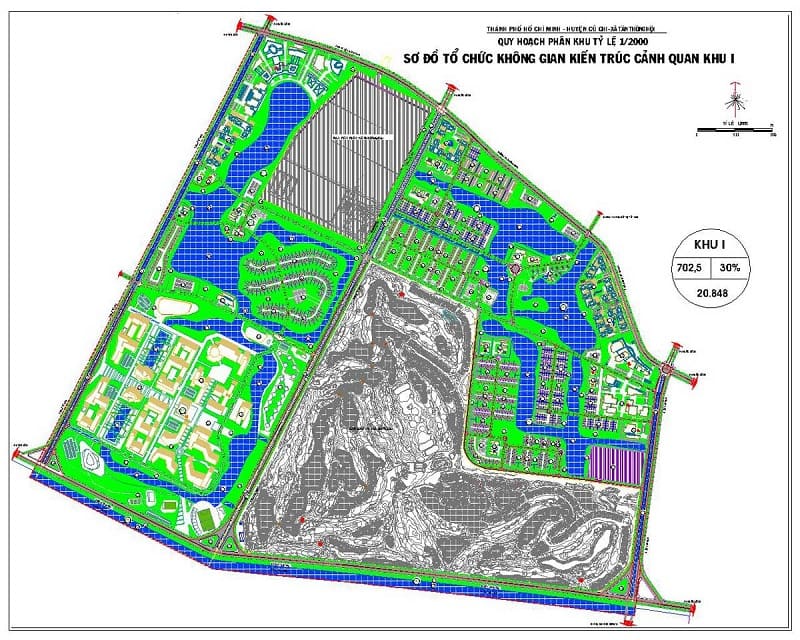 Phân khu I dự án được xây dựng với diện tích đạt khoảng 20.848 ha. Nơi đây sở hữu mật độ xây dựng chỉ đạt khoảng 30%. Phân khu I được bao bọc bởi hệ thống giao thông đầy ấn tượng. Bao quanh là chuỗi tiện ích hiện đại với không gian xanh hoàn mỹ. Chi tiết mặt bằng như sau.