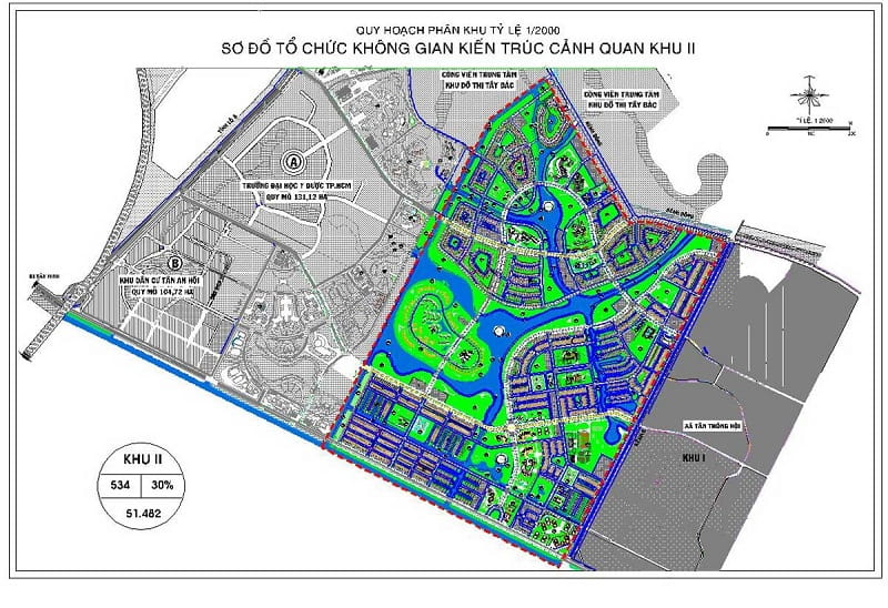 Phân khu II dự án được xây dựng và quy hoạch tỷ lệ 1/200. Hướng Đông Nam phân khu tiếp giáp với khu I và xã tân Thông Hội. Mặt tiền chính phân khu là tuyến đi đi tây Tây Ninh. Phía Bắc phân khu tiếp giáp với công viên trung tâm KĐT Tây Bắc.