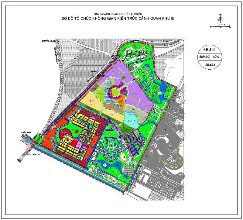 Phân khu III dự án sở hữu tổng diện tích khoảng 20.676ha. Mật độ xây dựng dự án đạt khoảng 40% với quỹ đất xanh là 469,40m2 và nhiều tiện ích hấp dẫn dành cho cư dân trải nghiệm.