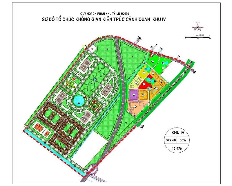 Phân khu IV dự án được xây dựng trên tổng diện tích khoảng 13.976ha. Nơi đây xây dựng với mật độ đạt 30% và diện tích cây xanh chiếm 329.60m2.