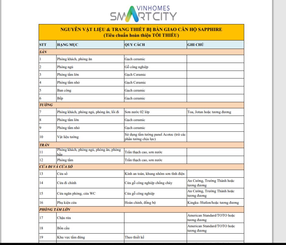 NỘI THẤT BÀN GIAO CĂN HỘ VINHOMES SMART CITY