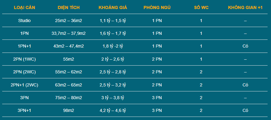 BẢNG GIÁ VÀ PHƯƠNG THỨC THANH TOÁN VINHOMES SMART CITY