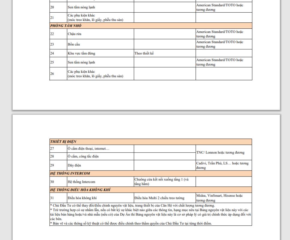 Nội thất bàn giao bao Vinhomes Smart City gồm: Cửa gỗ công nghiệp xử lý chống cháy; Thiết bị vệ sinh (Lavabo, bồn cầu, vòi sen tắm đứng) của American Standard (hoặc tương đương). Điều hòa Multi 2 chiều của VinSmart (hoặc tương đương); Sàn lát gạch phòng bếp và phòng khách, sàn gỗ phòng ngủ, trần thạch cao, hệ thống điện, internet, truyền hình cab.
