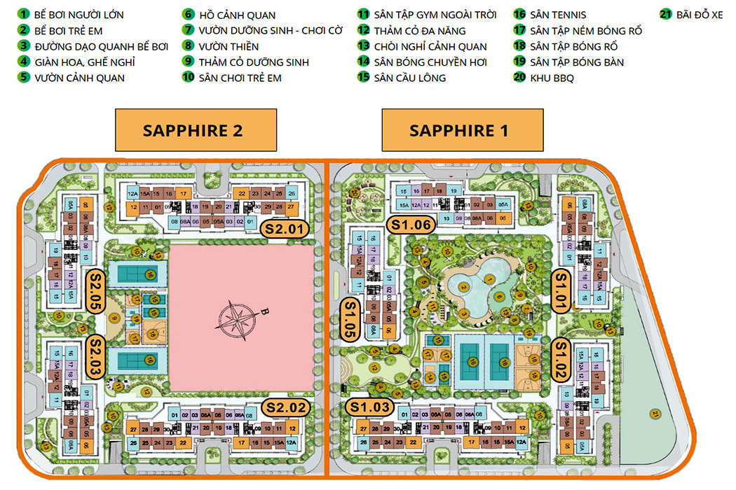 • Dòng căn hộ Vinhomes Sapphire chiếm 65% số lượng nhà ở với 3 phân khu: Sapphire 1, Sapphire 2, Sapphire 3