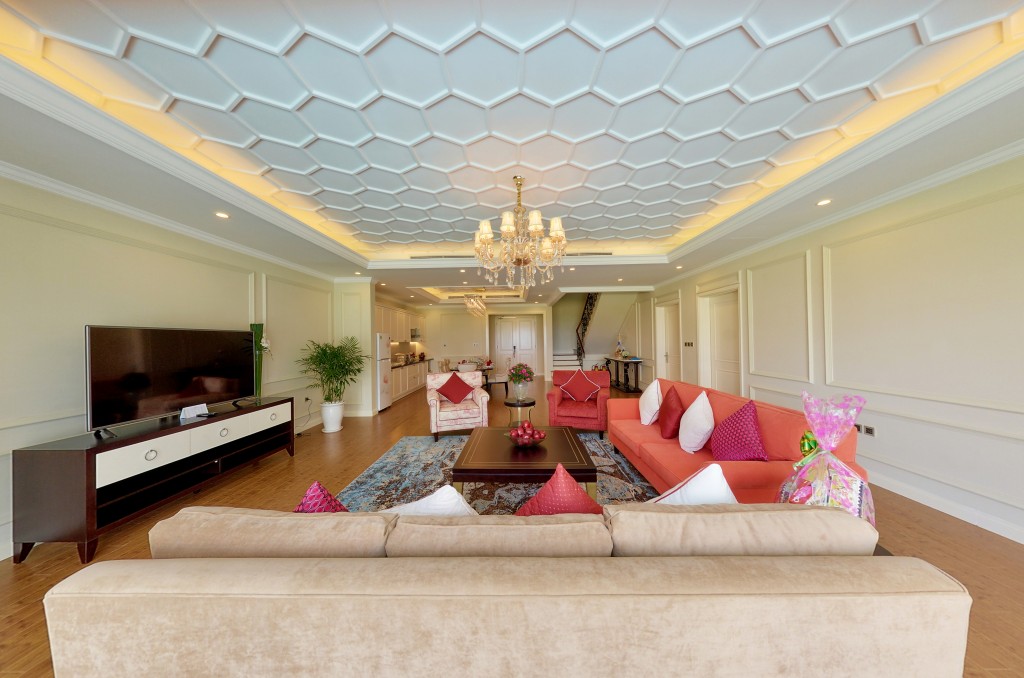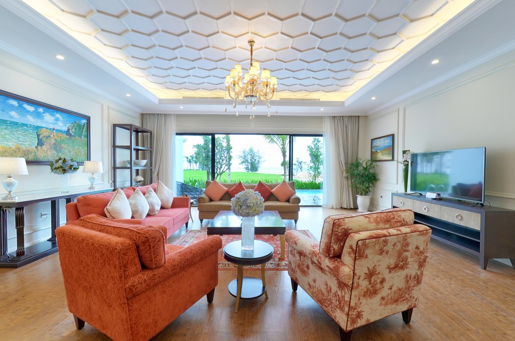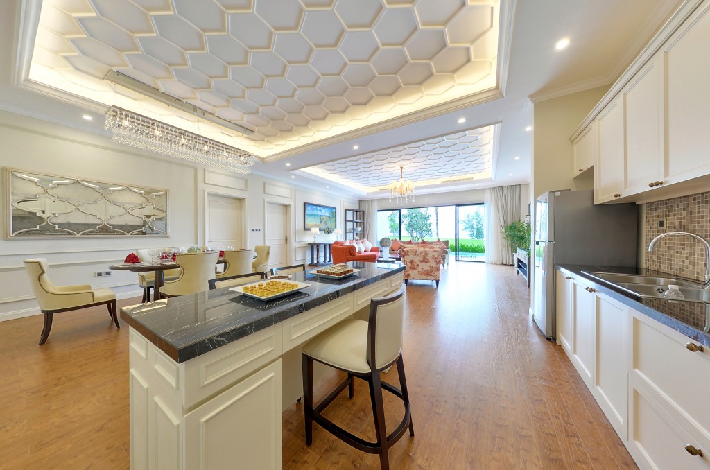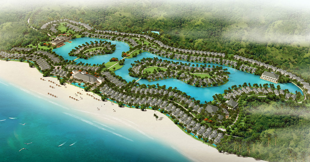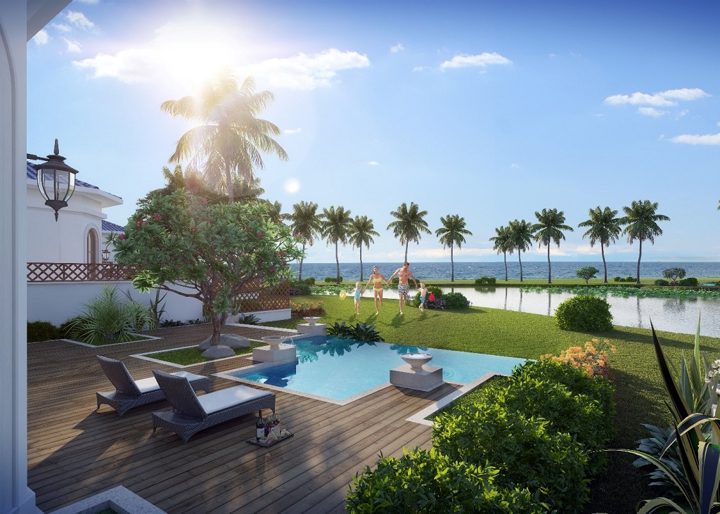 + Biệt thự đơn lập mặt biển: có thiết kế quy hoạch bao quanh hồ; ốc đảo với diện tích xây dựng 270 m2 với 3PN với số lượng 195 căn.