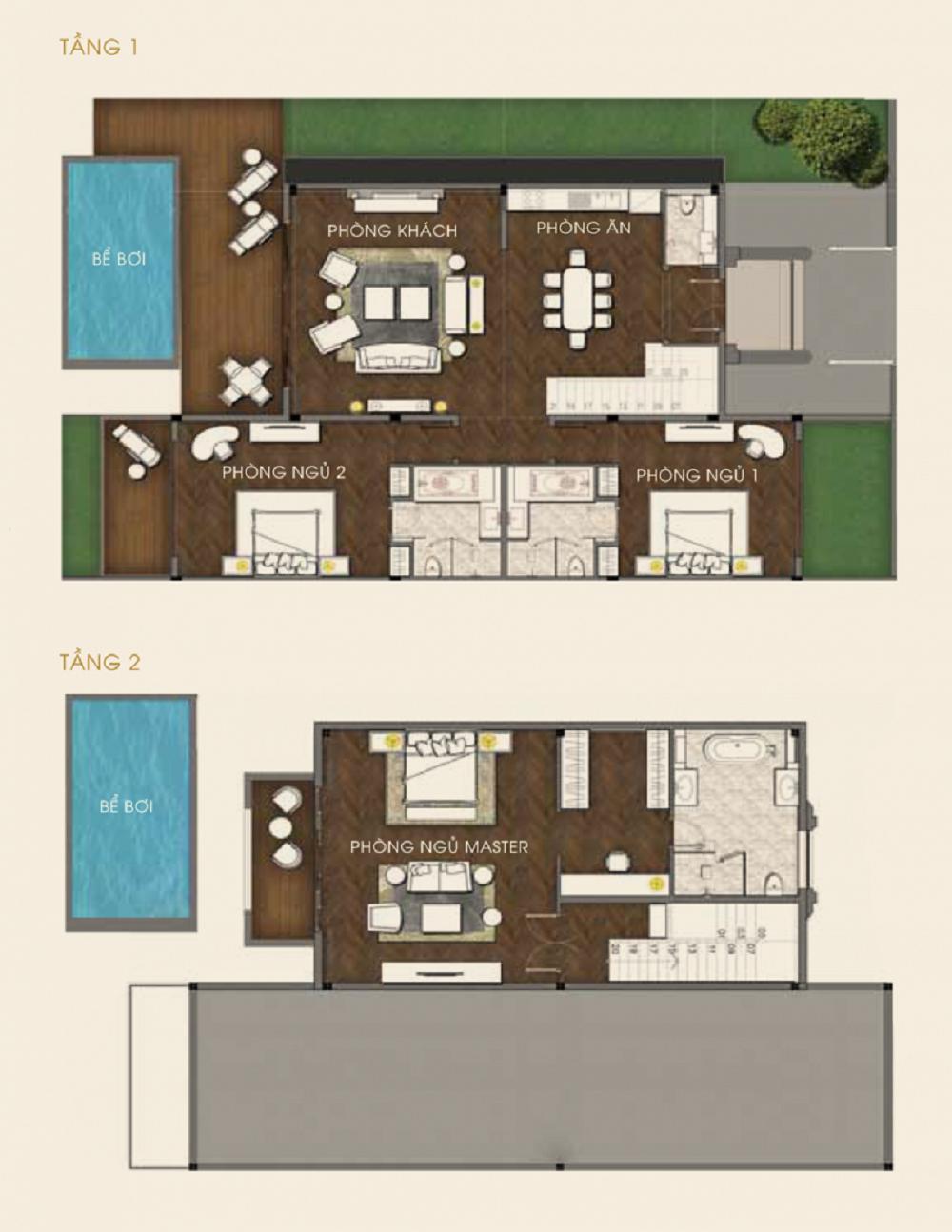 – Các căn dãy 2 PN, 1 Tầng ( Từ $620 Ngàn – $ 700 Ngàn ) Từ 13.96 – 15.76 tỷ/Căn Biệt Thự.