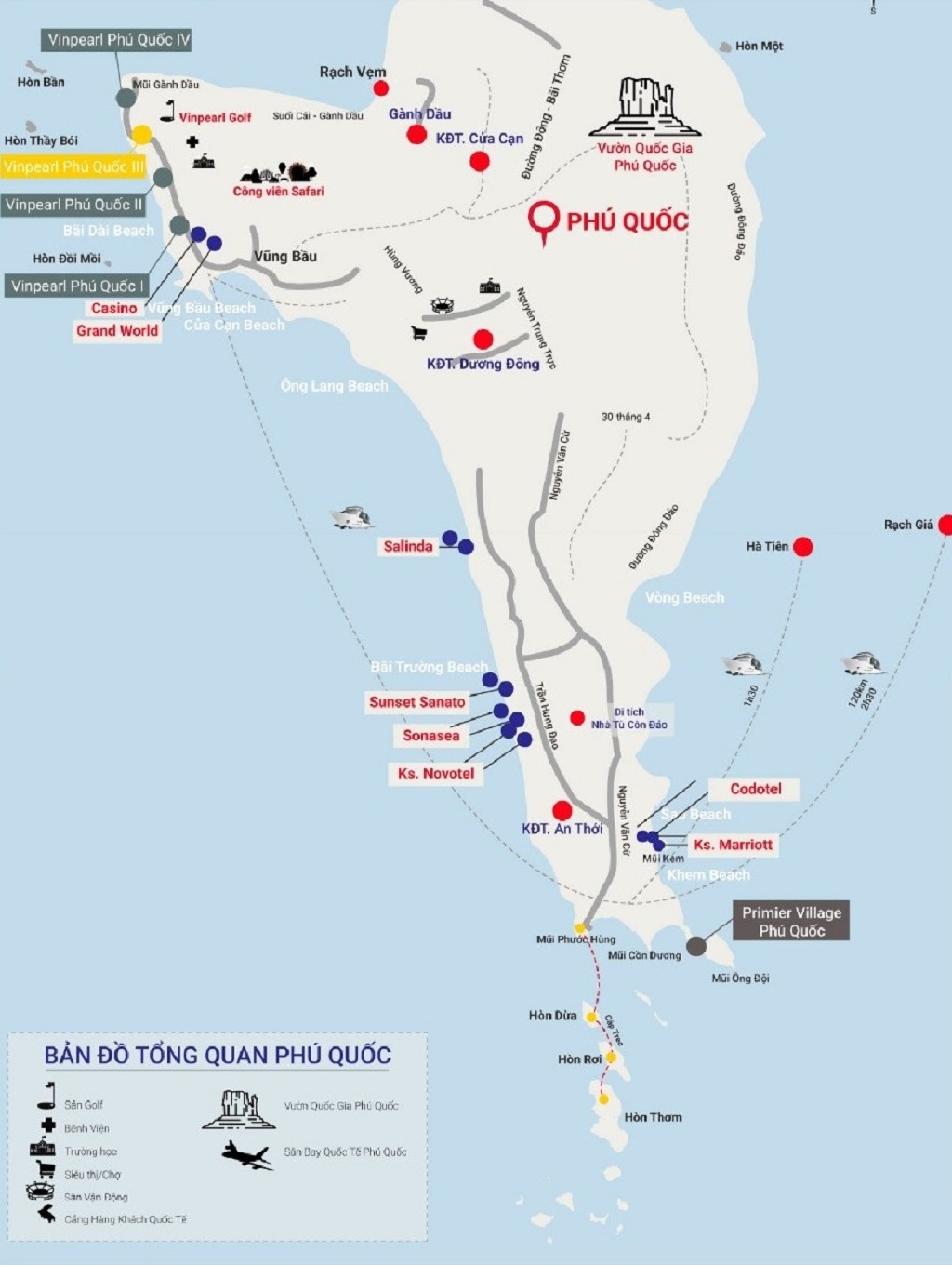 Dự án có vị trí nằm trong quần thể của khu du lịch Vinpearl Phú Quốc trong đó bao gồm tổ hợp có 2 khách sạn tiêu chuẩn 5 sao Vinpearl Resort Phú Quốc và Vinpearl Phú Quốc cùng với đó là các phòng khách cao cấp, thậm chí có căn thượng hạng.