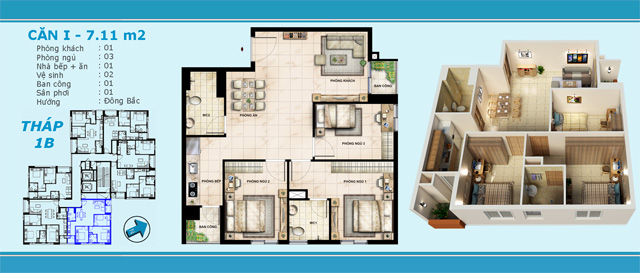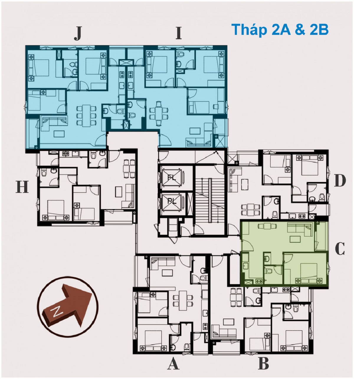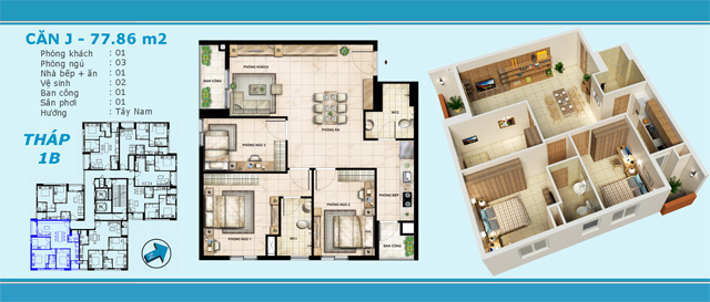 + Căn hộ 3PN: căn I -73.11 m2; căn J -77.86 m2
