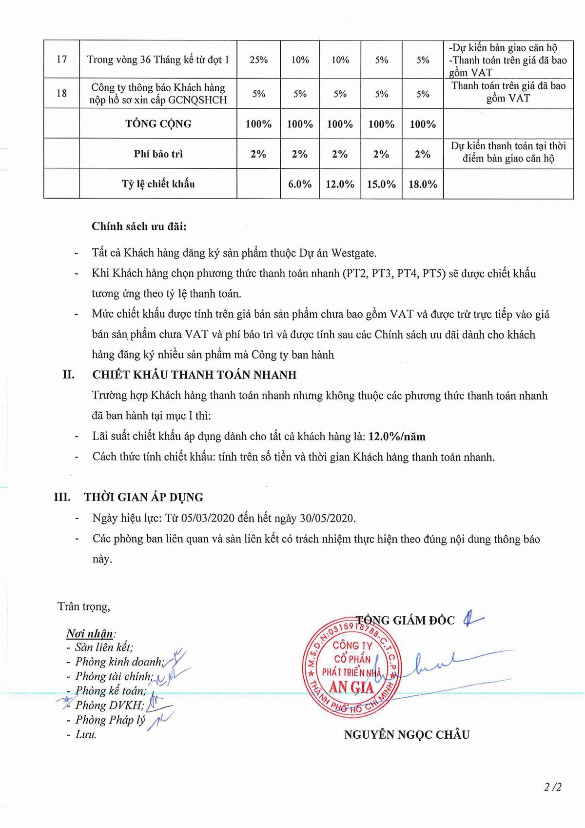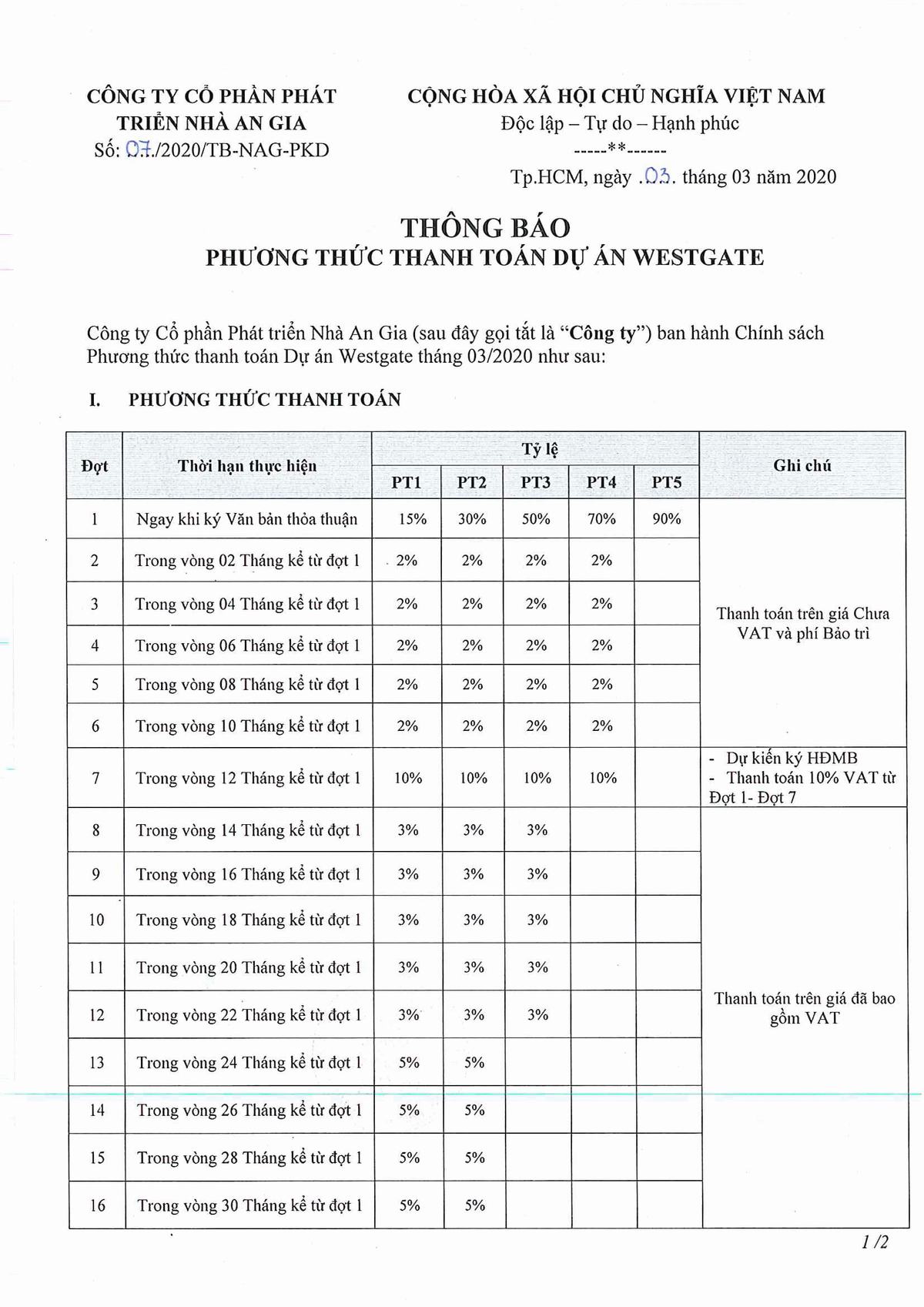 Bảng giá Westgate Park dự kiến cho khách hàng tham khảo: