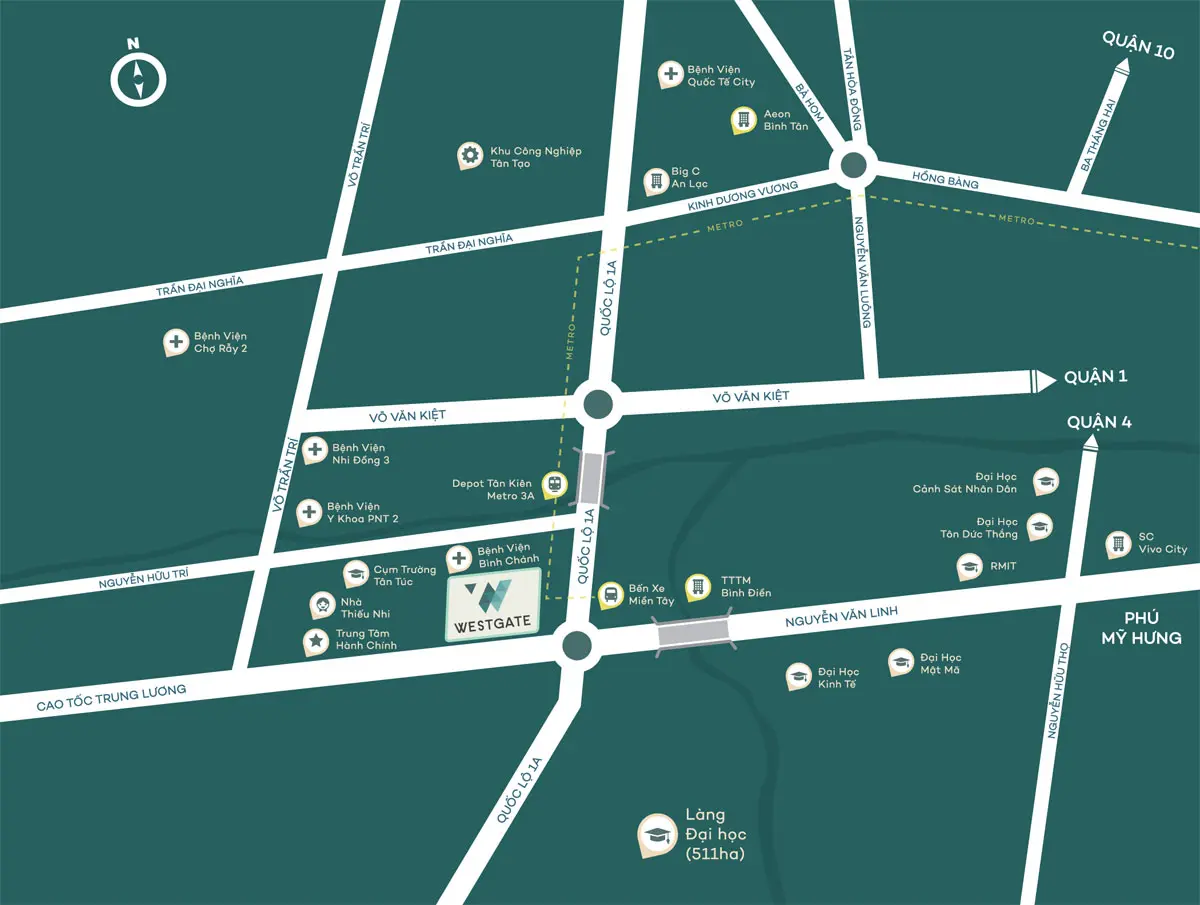 Dự án Westgate Park dể dàng tiếp cận với các vị trí trọng điểm của khu vực như: