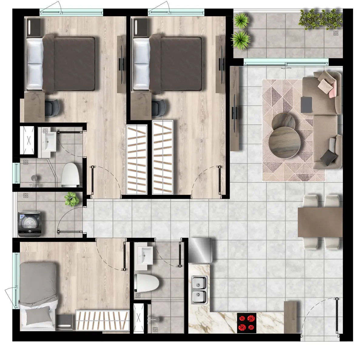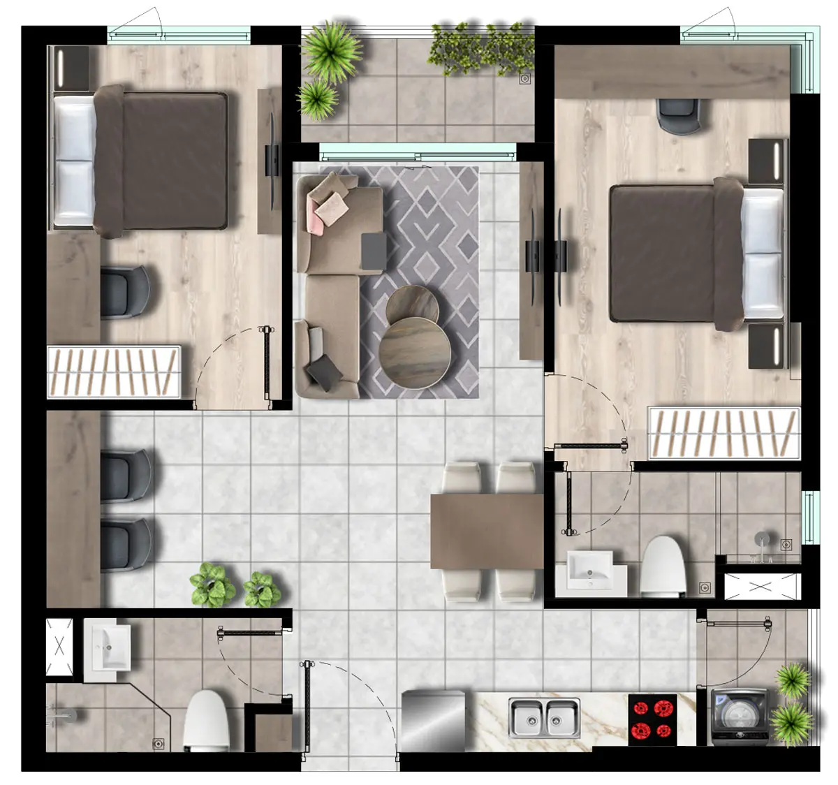 | 2 Phòng Ngủ | 59m2 | 1.8 tỷ |