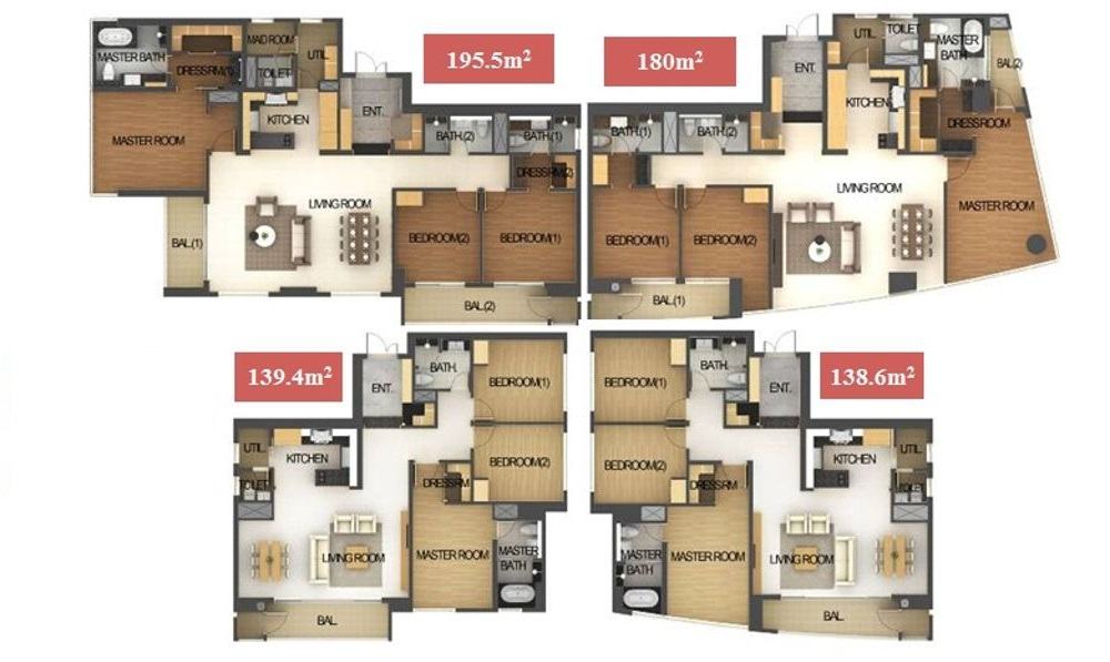 + Tầng 5 – 27: Bố trí các căn hộ với mật độ chỉ 4 căn hộ/ tầng với diện tích là 144.7m2 – 145.1m2 – 185.97m2 – 201.56m2, cùng với đó là 3 thang máy cho 1 tòa tháp căn hộ