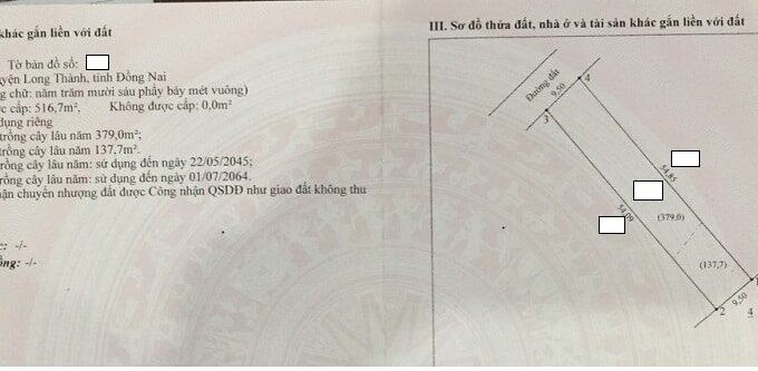 Bán đất xã Long An, huyện Long Thành, tỉnh Đồng Nai 3.5 tỷ – 517m2