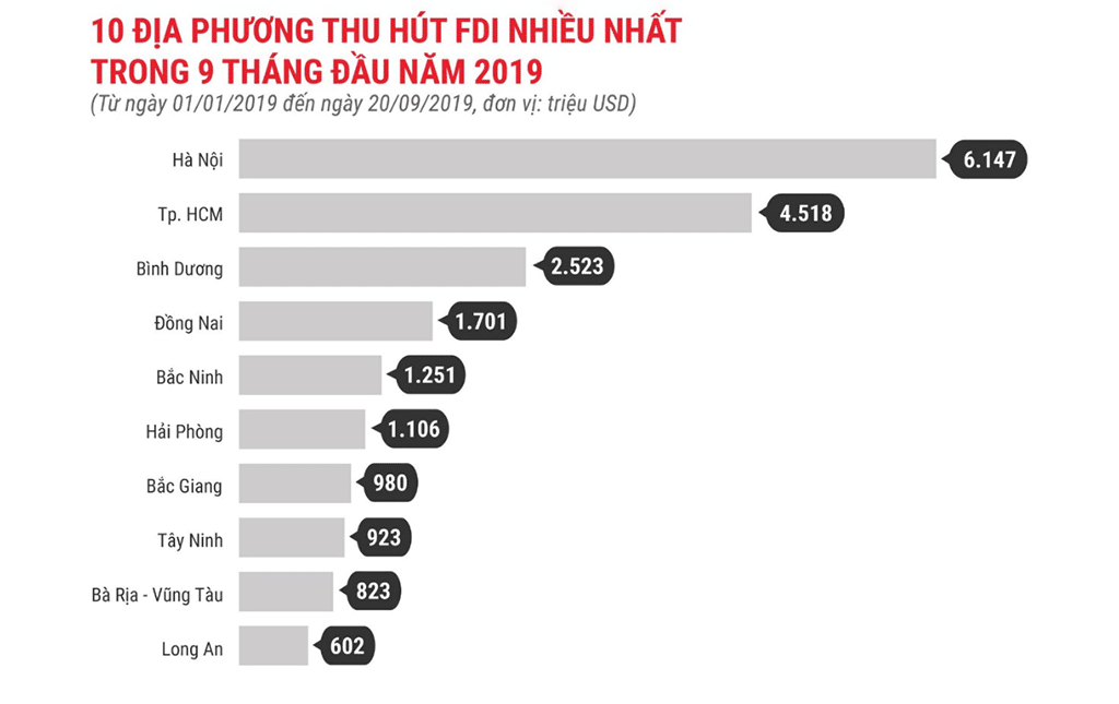 Bình Dương có mặt trong 3 địa phương dẫn đầu thu hút FDI